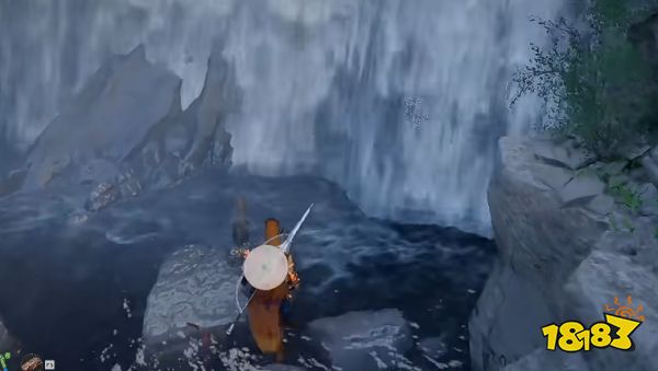 需已学会突进(刺击)技能,PC 端操作为 Shift+ 鼠标右键,手柄为右肩键+Y,必须用此技能才能穿过瀑布。