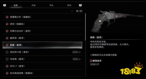 救赎是生化危机9中通关一周目后,可使用CP点解锁的武器之一,救赎是一把使用步枪弹药的手枪,极高的威力能够以及必杀大部分敌人,是游戏中里昂可使用的强力武器之一。下面就为大家分享生化危机9中救赎武器的解锁获取方法。