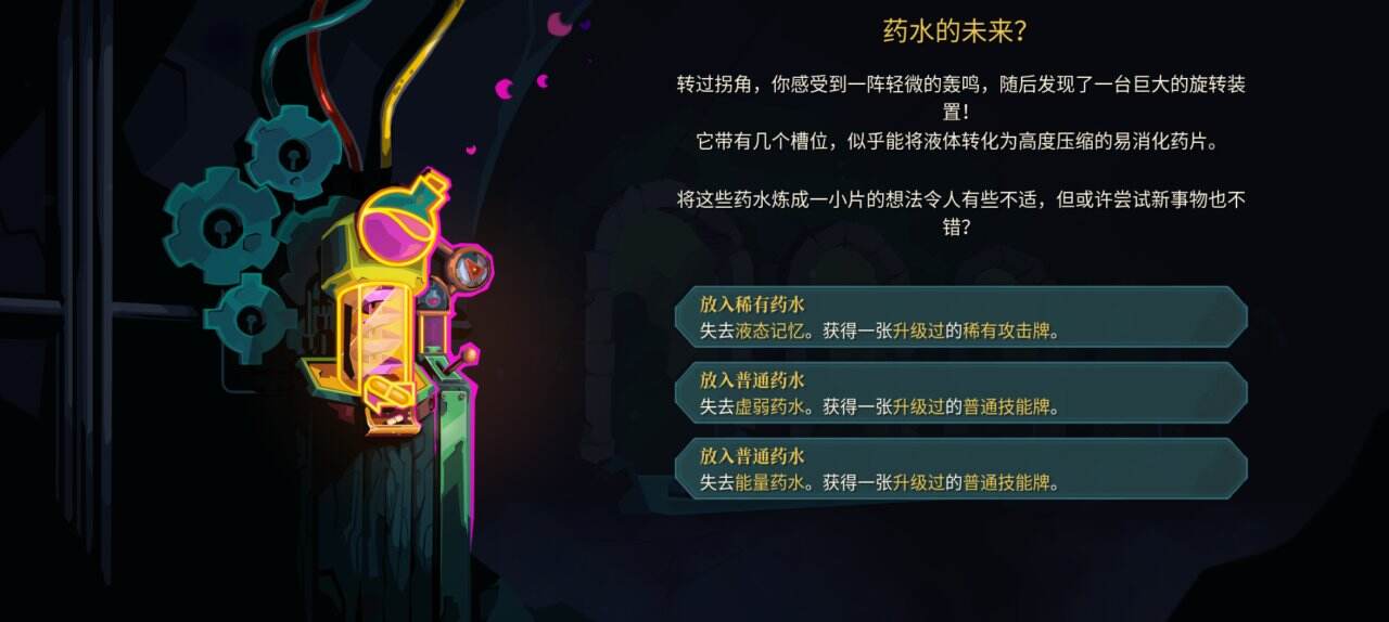 失去放入的普通药水。获得一张升级过的普通技能牌。