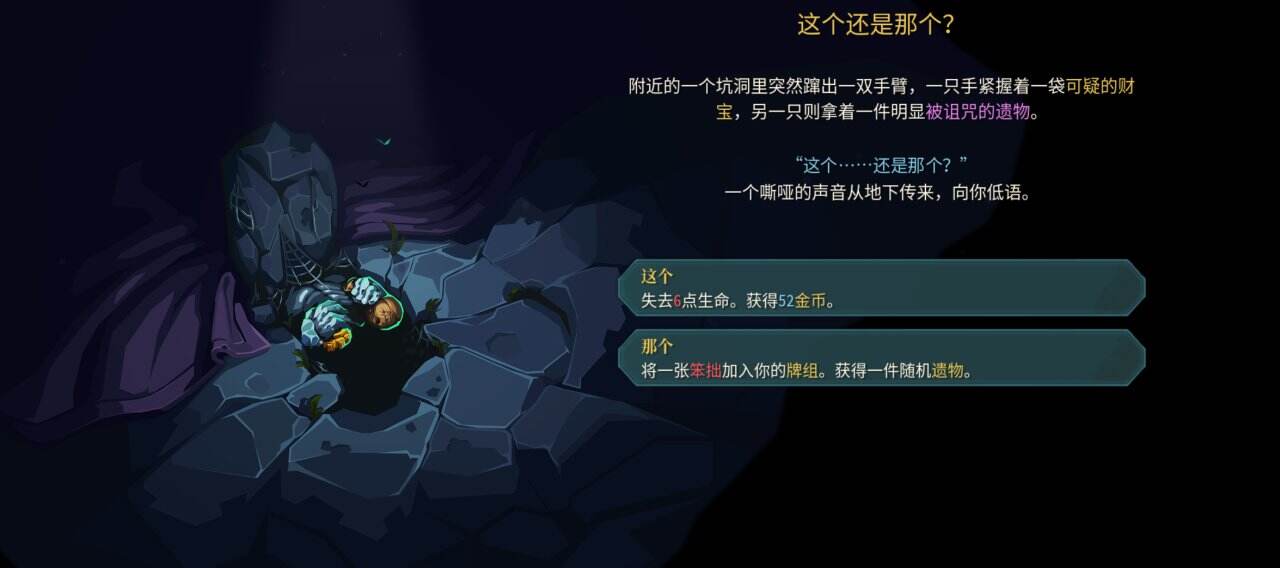 牌组加入一张“笨拙”。获得一件随机遗物。