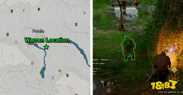 确认权限解锁后,前往福罗林森林南部寻找沃伦的具体位置。