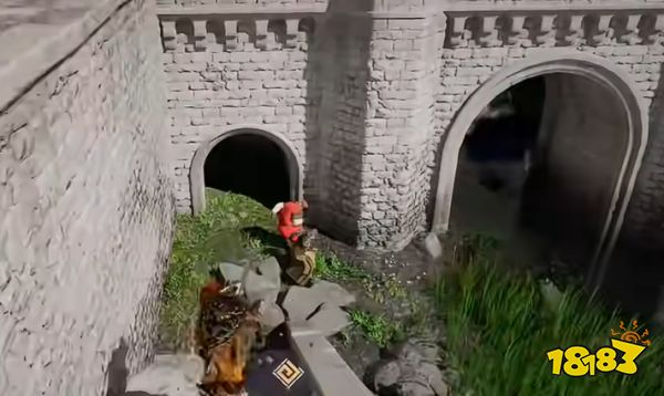 其次是攀爬至标记点,沿桥墩墙面攀爬,爬到树叶标记正下方或正前方的可站立平台,标记处就是暗门位置。