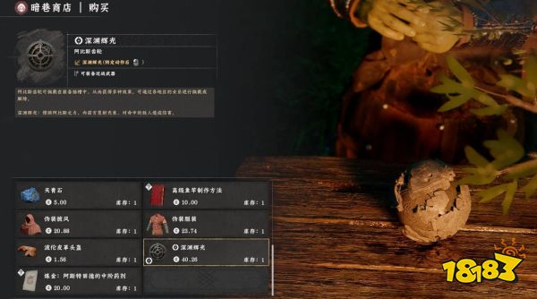 购买信息、价格:四十银币、商品名称:深渊辉光、库存:一件
