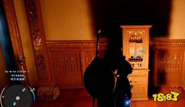 抵达上层区域后,进入旁边的拱门,继续顺着木质楼梯走到顶层,使用普通钥匙打开房门即可发现该保险箱。