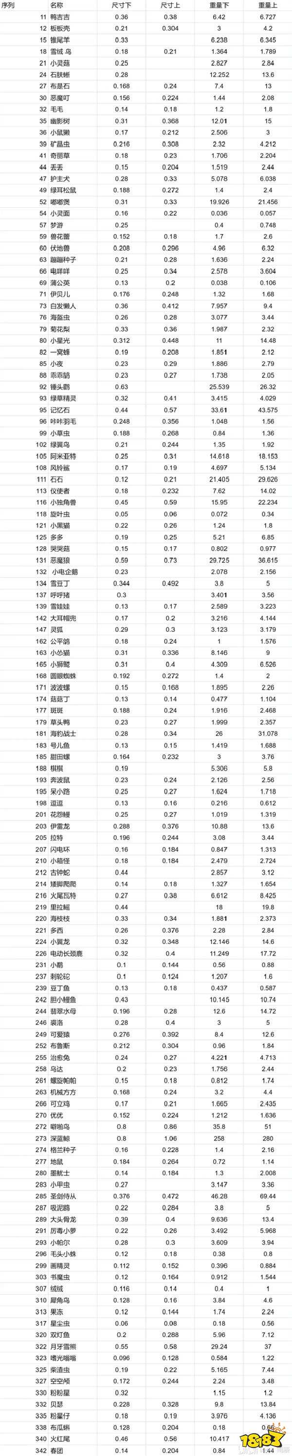 需要特别说明的是,本对照表仅供大家参考使用,数据并不一定完全准确。通常情况下,精灵初始形态的尺寸和重量大致为精灵蛋的 2.5 倍范围。此外,通过特殊途径获取的精灵,大概率不会出现在随机蛋池子之中,请各位玩家在查阅时注意区分,以免产生误解。