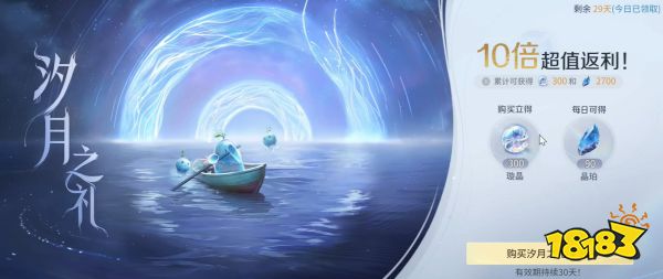 页面显示汐月之礼,售价 30 元,相当于 300 璇晶,直接点立即购买。