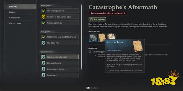 完成派系任务通常会发放恩惠信。例如,海盗队支线任务会奖励玩家 5 封恩惠信,而灾难的余波任务会让玩家获得 10 封恩惠信。