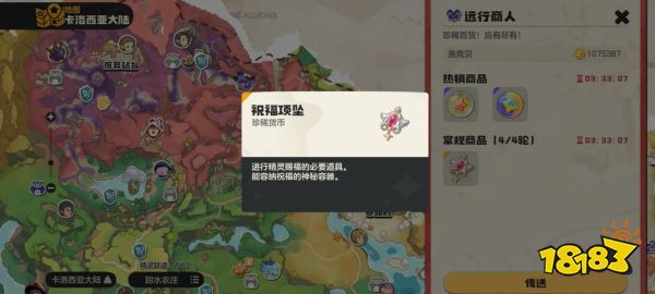 洛克王国世界玩家注意,超稀有道具祝福项坠现已上线,可轻松获取完美属性精灵。该道具仅在远行商人处随机刷新,售价八十万洛克贝。使用后可复制已有精灵或好友精灵的完美性格、特长及资质属性至精灵蛋中,大幅降低捕捉压力。本文将详细介绍祝福项坠的获取途径、具体使用方法及注意事项,帮助小洛克们快速培养心仪宠物,避免浪费资源,千万别错过远行商人的刷新时间。