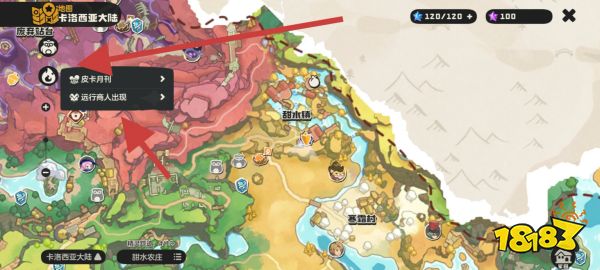购买方式步骤如下,首先打开游戏地图,点击火苗标志进行传送。