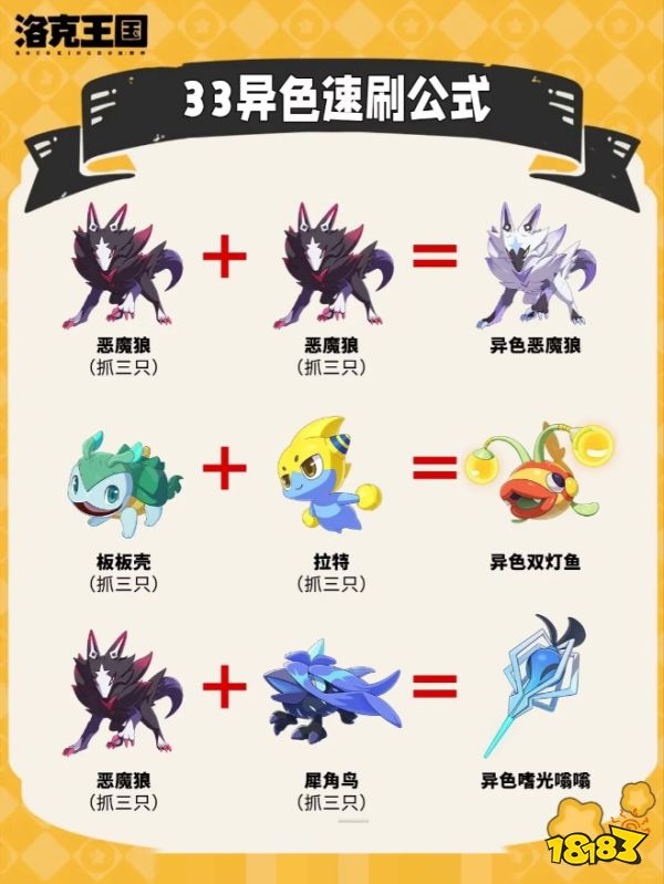 恶魔狼(抓三只)+ 犀角鸟(抓三只)= 异色嗜光嗡喘