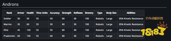 特殊能力:再生、35%能量抗性、每格-2%命中率。