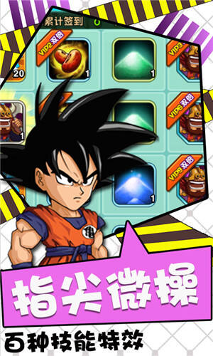 进服福利:1.上线福利:上线即赠满V,金币500W,钻石18888 2.首充大礼:首充任意金额即可获得赛亚人王子贝吉塔,助你战力飙升刷图无困扰 3.首充双倍:充值指定档位钻石即可获得双倍钻石的奖励(每个档位限购一次)次充永久1.5倍钻石奖励 4.签到奖励:每日签到即可领取海量钻石更有大量材料送给你 5.vip礼包: 花取少量元宝即可获得丰厚的奖励,英雄碎片、海量金币、材料等你来取