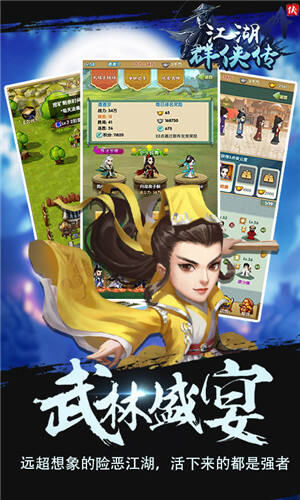 《江湖群侠传》是一款精心制作的武侠挂机与卡牌策略相结合的手游,游戏以高度开放引人入胜的剧情,并增加了更多悬疑解谜玩法,同时构建了更未宏大的武侠世界。超过120种武功秘籍,贯穿古今的神兵利器,相伴左右勇闯天涯的绝世侠客,让这款游戏独树一帜,爱不释手!庞大、真实、充满感情的江湖梦,我来替你创造!