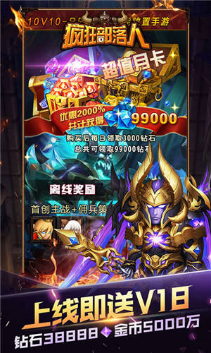1、创号送V18,钻石赠送38888,金币5000W,免费领取VIP福利礼包;