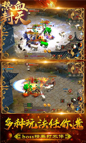 热血封天BT版特色单职业玩法,再无职业差别;全新创新玩法,技能嗨到爆;跨服战,仙魔争霸,幻境,打宝之地,应有尽有;怪物爆率高,元宝,装备通通爆,不花钱也能开心玩;拍卖行自由交易;独家秘境打宝玩法,打宝根本停不下来;