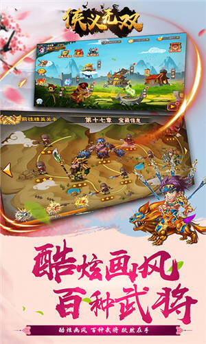 《侠义无双》震撼来袭!还原真实三国故事,挑战历史经典战役,英雄之路,神秘洞穴,宝矿玩法,官职战,世界BOSS等玩法颠覆传统卡牌。专属神兵,传说神器,至尊宝物等黑科技让你领略游戏魅力,打造掌上三国超爽卡牌战斗,快来将三国名将收至麾下吧,想要成为三国霸主,就赶快放马来战!
