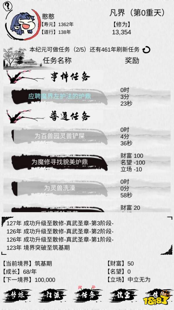 论如何建立一个修仙门派游戏是一款仙侠经营游戏,在这款游戏中,没有紧张的战斗,每一个玩家都可以选择自己钟意的方式去完成系统发布的日常任务,从而让自己有更多机会来发展开拓自己的门派。