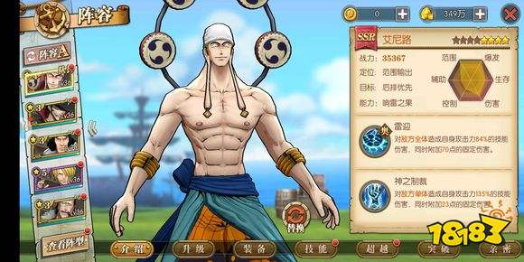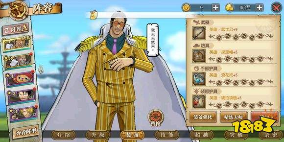海军三大将之一,擅长属性伤害。闪闪果实能力者,拥有超高的光属性伤害。拥有极高的闪避率,暴击率属性随速度提升。