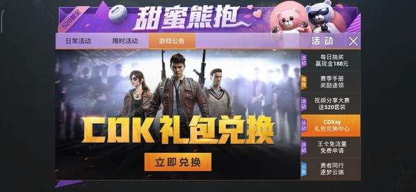 在和平精英游戏外,如果玩家想要去兑换cdkey,就需要去游戏官网上进行兑换。