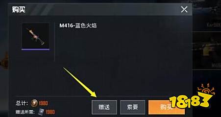 3.选择好之后点击这款枪械皮肤进行购买,点击购买之后会出现赠送、索要、购买三个选项,我们选择赠送;