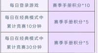 每天经典模式中累积游戏10分钟,也加赛季手册积分*5。