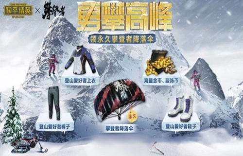 和平精英”和电影“攀登者”进行了联动,在9月30日-10月13日游戏中玩家可以在海岛和雪地地图中体验到攀登者彩蛋,玩家通过完成指定的任务就有机会来抽取登山爱好者套装和永久攀登者降落伞了。