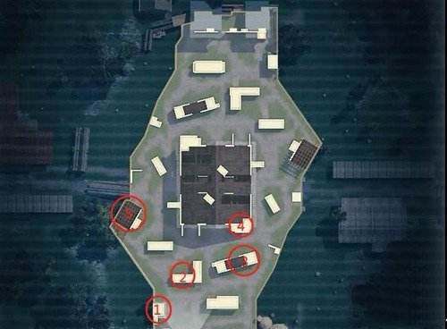 狙击手一般都是寻找高点位置给队友创造视野,同时利用高点优势给对方造成有效压制。地图中有一些地方是可以刚好是可以爬到顶部进行观察,比如左侧通道木棚顶部、中间L型集装箱顶部。这些位置都是比较空旷,视野比较好的地方。