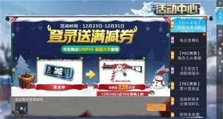 12月23日-12月31日,登陆游戏即可领取满减券,可在购买UMP45-圣诞大吉时使用。