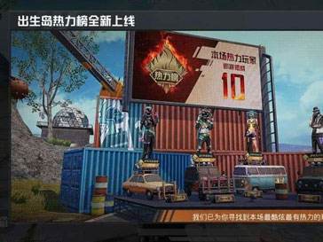 在SS3赛季更新后,每局开始的出生岛上系统会选出热力值最高的四位玩家,并且把他们的形象和名字放到最显眼的地方,颇有模仿APEX的意味。但这个热力榜系统和APEX不一样的是,每隔几秒钟,出生岛上的热力榜就会刷新一次,热力值更高的玩家将会出现在榜单上。旨在让玩家追求更高的热力值。