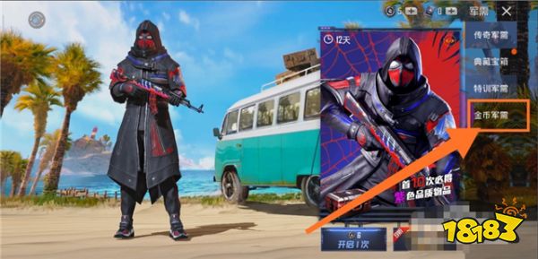 在和平精英的右边中间有一个军需,打开军需最后一个是金币军需,在金币军需中会发现很多服饰等物品,可以用金币开启,每次都能获得外观服饰类的任意一种物品。