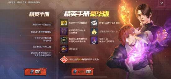 更新了SS6赛季,主要分为普通手册和精英手册,其中一个价格是600点劵,另外一个则是1680。如果你要购买的话,肯定是精英手册豪华版更值得靠, 虽然价格上要多了108元,可以直接让你更快的升级100级。