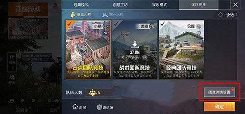 玩家直接点击切换模式,然后选择团队竞技,可以在下面,看到一个团队详情设置。