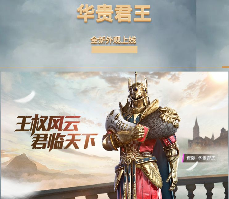 以上是本次华贵君王皮肤爆料!穿上它,把你的霸主气派展现出来吧~试问,谁不想头顶皇冠勇夺海岛桂冠呢?