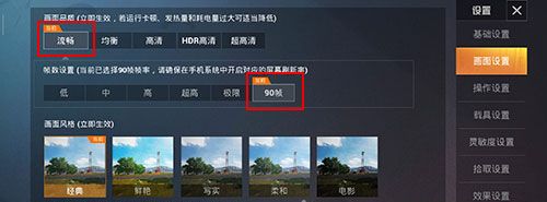 然后开启之后,进入游戏,需要玩家选择最低的画质,也就是流畅,之后就可以开启这个90帧模式了,也就是你无法在其他模式下使用这个90帧,因为目前阶段虽然游戏的处理器都比较高,但是在高画质下想要达到90帧,那么一方面是续航伤不起,其次就是散热也无法支持,所以说有这两点因素存在,就只能在最低画质下进行游戏了。