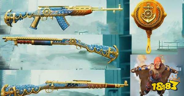 接下来咱们看看枪械皮肤,个人感觉这次的皮肤,丝毫不比尊贵君主差,甚至要比君主系列更加华丽。枪械皮肤给到的是SKS、S1897和98K,外观都有船锚和船舵的元素,而且周身是有金属制成的,像是皇家御用的枪械。