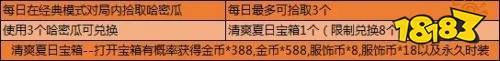活动期间,每日在经典模式对局内,最多可拾取3个哈密瓜,用于兑换清爽夏日宝箱。