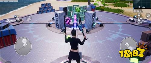 比如上图的这个在倒计时之前选择“准备电音”,角色就会变成双持电吉他的形态,并通过挥动乐器来击碎迎面弹射出来的物件,实际上就类似于音游,而根据游玩的表现和得分还会掉落物资奖励。