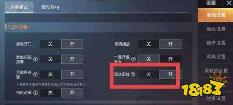 玩家在和平精英基础设置页面中下拉列表,在功能设置分类找到“淘汰回放”开关将其点亮,即可成功开启淘汰回放功能。