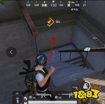 然后等对面露出慌张移动的脚步声时,我们就可以听声辨位判断对面位置,选择等他跳窗来送,或者等他远离楼梯口时候趁其不备攻上二楼。