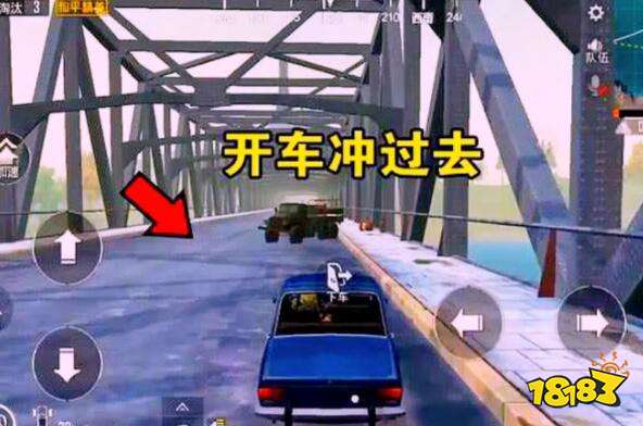 第三:如果我们想去堵桥时,却遇到有人在堵桥时,一定要避免在正面交锋,特别是对手用车堵桥的情况下,除非你灭掉桥上的所有敌人否则你根本过不去。我们可以扭头回去坐船或去另一个桥。万一对手突然出现,我们来不及的时候,还有一个小妙招就是我们可以直接撞向桥两面的栏杆,然后冲到桥下的陆地上或者河里的,这样就可以躲过一劫了。