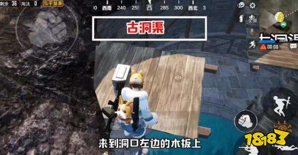 在洞口左边的木板上,另外洞里的资源也是非常丰厚的,因为位置比较偏僻,比较适合一些想要苟住发育的玩家前往。