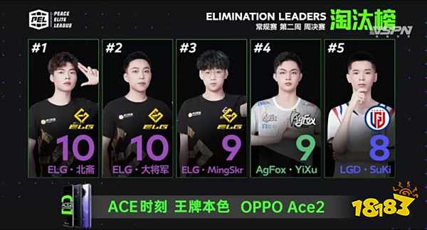 在单日淘汰榜中,ELG战队三人上榜,其中北斋不仅获得单日MVP,还获得了周MVP,场均击倒远远超出全联盟的平均数额还要高出一截,在比赛中也能看出北斋超强的战术意识和个人技术,在对抗中多次帮助队友脱出险境,大将军的回归也是再次证明了自己的实力非凡,明皇也在比赛中多次舍己保全掩护队友,作为新人的Z9也是顶住压力,听指挥打配合默契十足,ELG战队一路披荆斩棘多次稳进决赛圈。