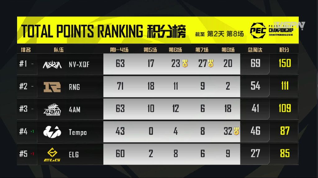 NV-XQF战队以150分——荣获首届PEC和平精英国际冠军杯冠军