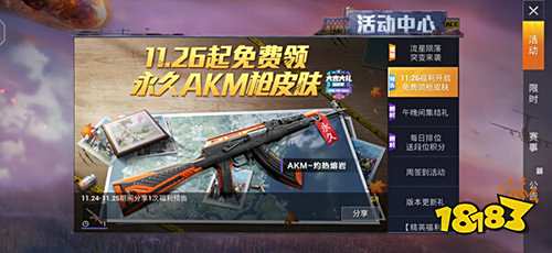 活动将会在11月26日正式开启,但是在11月24日和25日也即今明两天,玩家可以通过分享活动预告来领取到3天的AKM灼热熔岩皮肤的体验机会。