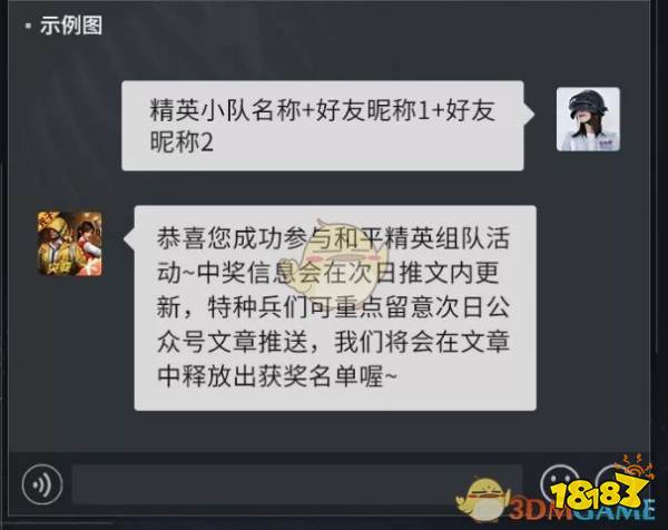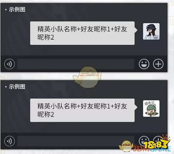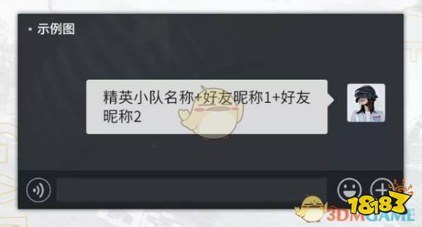 2、在菜单栏输入精英小队名称+好友昵称1+好友昵称2。
