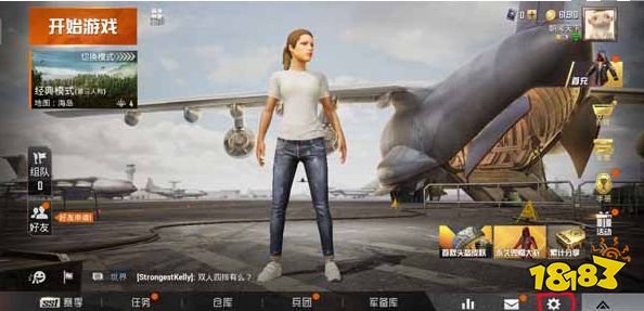 1、进入和平精英游戏大厅,点击右下角的【设置】;
