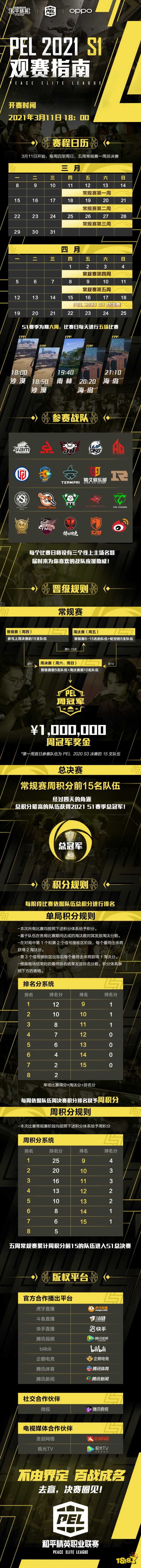 不由界定,百战成名!3月11日,PEL和平精英职业联赛 2021 S1赛季即将强势开战!赛程持续6周,PEL和平精英职业联赛 2021 S1赛季共有20支职业战队参赛,每周四至周日,每天都将为观众带来五场紧张刺激的巅峰对决。