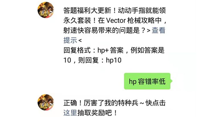 答题福利大更新!动动手指就能领永久套装!在Vector枪械攻略中,射速快容易带来的问题是?>查看提示<