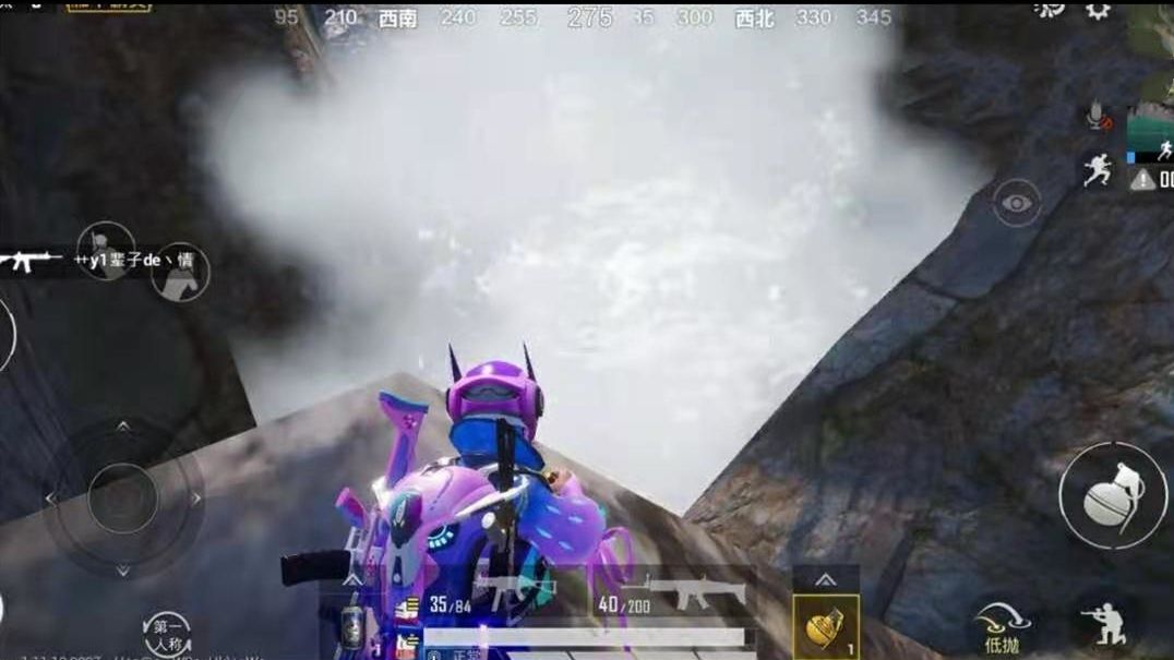 在大石头上掏出手雷,,选择低抛模式,准心对准下图这个位置,将手雷抛出(注意捏雷的时间,避免炸倒自己)