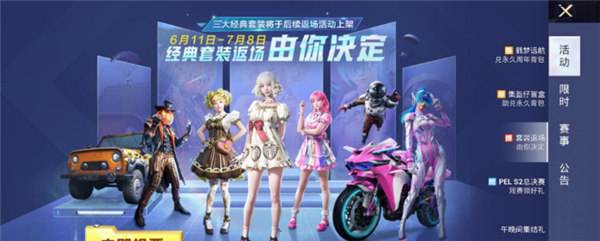 在6.10这天,光子的策划“小白裙”,在和平营地发布了1条返场活动开启的动态,同时还创建了1个“经典套装返场由你决定”的话题,动态中表示返场活动已经在游戏内上线。